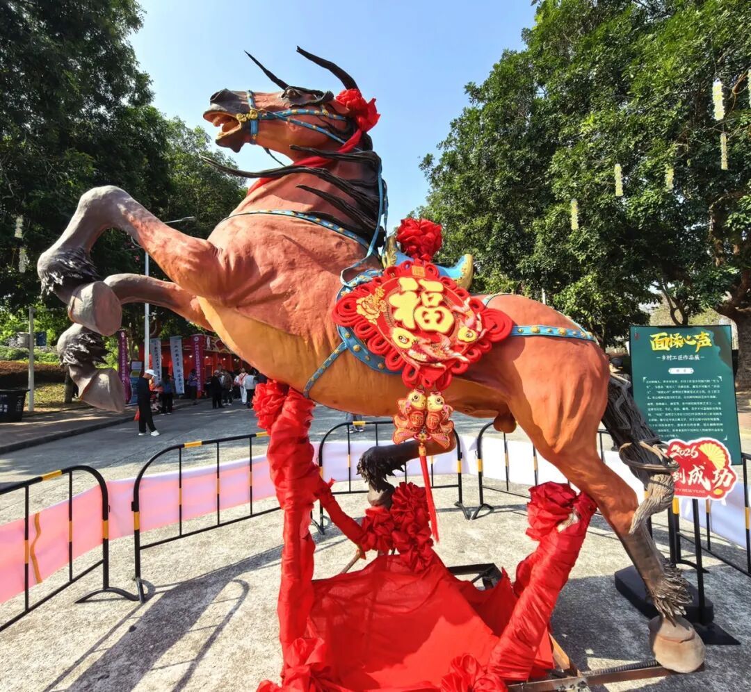 据李天艺介绍,这匹面塑马高达2.89米、长2.86米,从骨架搭建到细节雕琢,每一步都凝聚着心血。“马年恰逢从化马场开跑,我想用这匹骏马,既致敬非遗,也为家乡马产业助威。” 他说,作品耗时 8 年,是自己从业 10 年来难度最大的创作,此次展出希望能让更多人看到面塑的魅力。